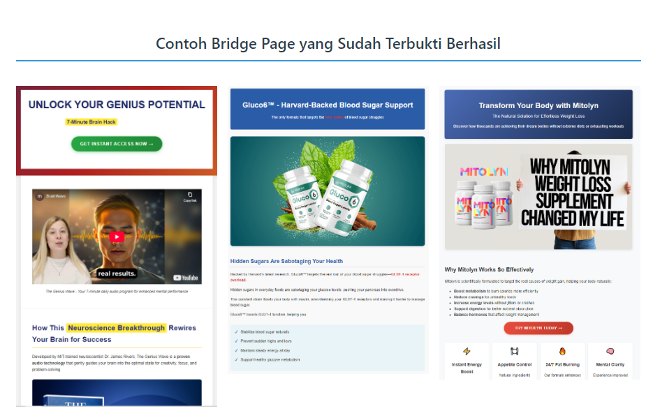 Template bridge page yang sama persis dengan yang saya gunakan untuk menghasilkan ratusan juta sebulan. Tinggal ganti link affiliate Anda dan siap digunakan!